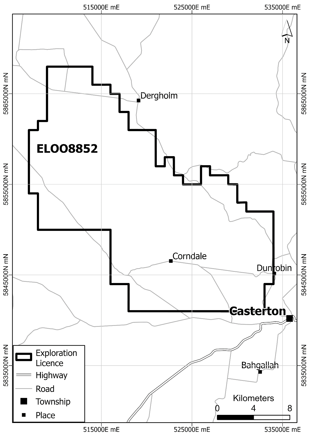 Casterton. Similarly, the application for Exploration License reaches as far west