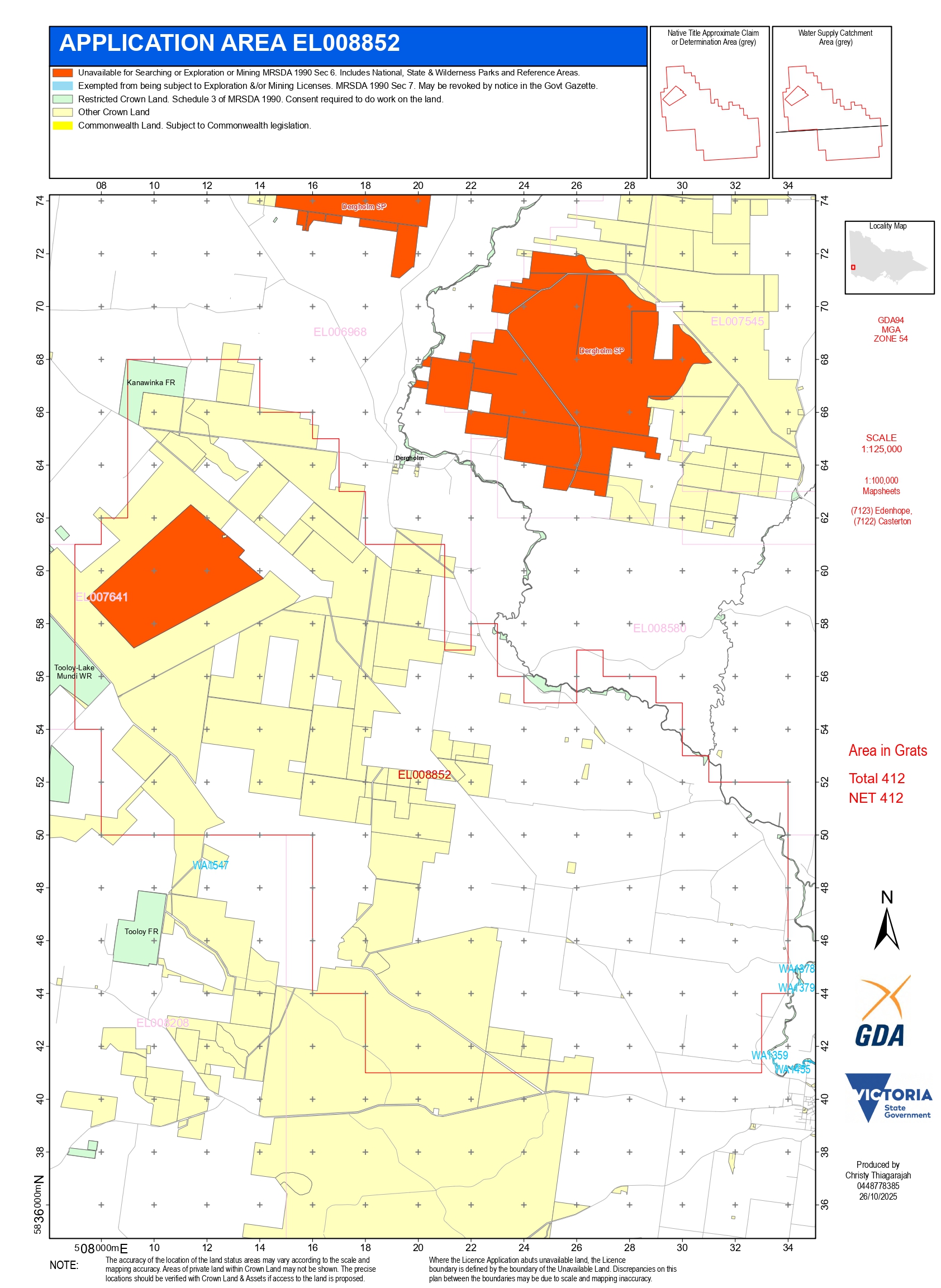 ( EL008852 ) (with acceptance date of 7 November 2025) covers 412 graticules